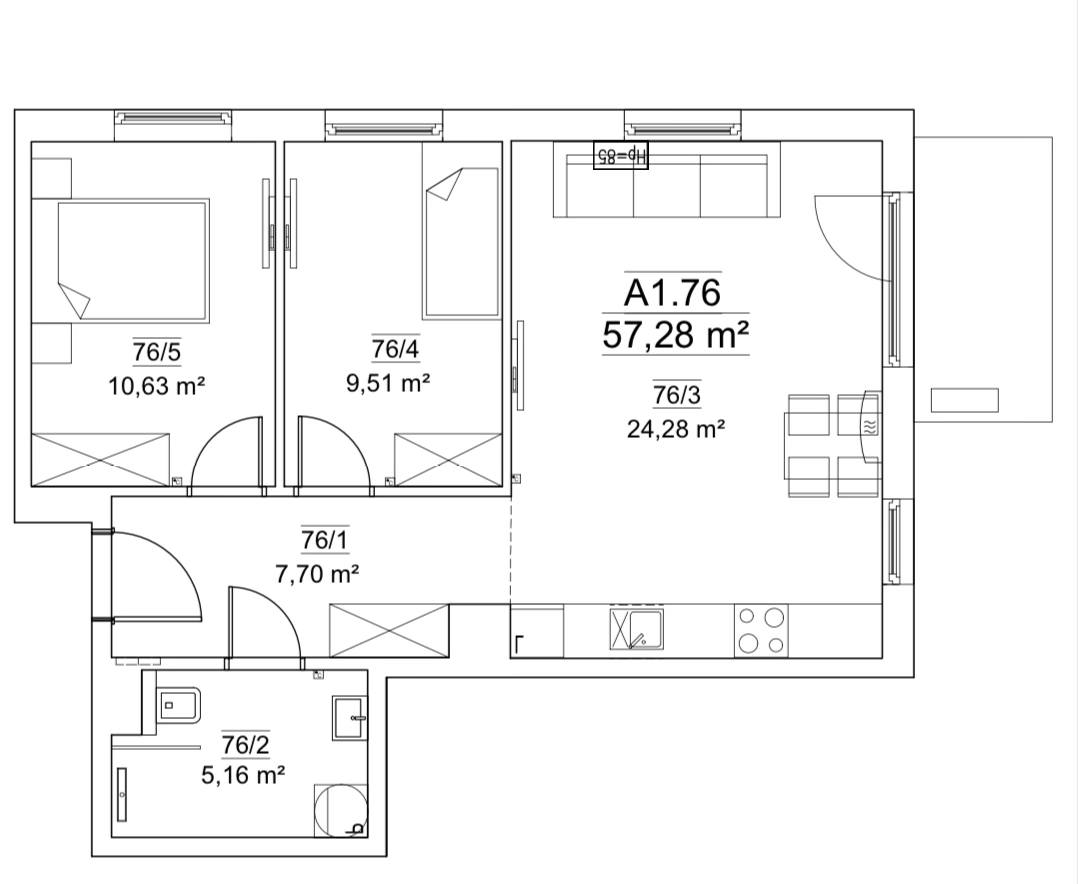 – salon z aneksem kuchennym (z wyjściem na widokowy balkon)- 24,28 m2